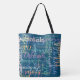 Eine elegante blaue (benutzerdefinierte Farbe) Tasche.bag mit Ihrem eigenen Namen in verschiedenen Farben und Schriftart-Stilen wiederholt