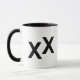 Diese weiße Weckerkaffee-Tasse mit schwarzer Kanteordnung und -griff trägt das große Siegel des Staat von Jefferson auf einer Seite und das doppelte x-Symbol auf der anderen zur Schau. Die zwei Xs symbolisiert, was die Begründer des Bewegungsfilzes der "Betrug" der Leute durch ihre Vertreter in ihren jeweiligen Staatshauptstädten - Salem in Oregon und in Sacramento in Kalifornien waren.