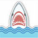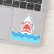 Der sonnige, große, weiße Hai mit seinen Kiefern agape springt von den Wellen bereit zu beißen. Gutes Geschenk für Schwimmer, Tiefseefischerei, Taucher.