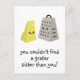 Groß und Käse mit Text, der lautet: "Du konntest keine größere Schwester finden als du!" Du kannst das Wort Schwester leicht in :Mom, Papa, Bruder, Chef oder alles, was du willst, ändern.