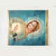 Flame der Liebe des Unbefleckten Herz-von-Maria-Ikons mit oben und unten goldenen Band mit Logo oben. Aquamariner Hintergrund.