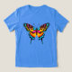T-Shirt in einem großen Schmetterling aus Frack, in kräftigen Primärfarben orange, türkis und fuchsienrosa, mit schwarzem Akzent