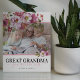 Elegante Urgroßmutterplakette mit klassisch weißem Hintergrund, der in jede Farbe verändert werden kann, hübsch rosa Aquarellblütenschmuck, ein Foto Ihrer Nana, das Sprichwort "Urgroßmutter, die Besten" und die Enkelkinder-Namen.