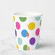Große regenbogenfarbene Punkte in Rot, Rosa, Gelb, Grün, Aqua, Blau und Violett verleihen diesem Papierbecher ein niedliches Ambiente und koordinieren sich nahtlos mit der Safari Animal Geburtstagssuite für ein einheitliches, aber nicht allzu harmonisches Aussehen.