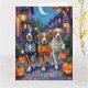 Adorable Große Schweizer Berghunde, die in verspielten Halloweenkostümen gekleidet sind, tragen Kürbiseimer, während sie unter dem mondbeleuchteten Himmel tricksen oder behandeln. Dieses festliche Design unterstreicht die robuste Bauweise der Rasse, die trifarbigen Markierungen und den sanften Ausdruck, der perfekt die sprichwörtliche, aber lustige Atmosphäre Halloween-Abends einfängt. Ein herzliches Fest für Hundefreunde und Halloween-Fans gleichermaßen.