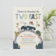 Votre petit est en train de grandir deux fois plus vite ! Invitations amis et famille à une fête de 2ème anniversaire amusante avec cette amusante invitation à thème d'illustration de voitures et d'animaux vintage.