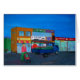 Eine einsame alte Frau kauft eine Wassermelone und räft sie in einer alten Babykutsche Zuhause. Typische Straßenszene in Südkorea, wo Großmütter (Halmoni) verlassene Babytrollen für provisorische Einkaufswagen verwenden. Dieses fotografische Bild entstand aus einem Originalgemälde des sparsamen Malers Reggie Hart (레 지 트).