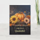 Halloween-Grüße an deine Großmutter! Oder, wenn Sie es vorziehen, rufen Sie ihre Oma an und passen Sie den Titeltext an. Stellen Sie sich ein schönes Bild eines Halloween-Kürbchens vor, umgeben von Blume und Blätter im Herbst.