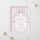 Feiern Sie die werdende Mutter mit dieser charmanten, grandmillennial-inspirierten Babyshower-Einladung mit elegantem rosa Bogenrahmen und zartem, vintage-blumigem Streifenmuster-Hintergrund. Sanfte Pastellfarben und romantische botanische Details schaffen eine zeitlose Cottagecore-Ästhetik, perfekt für eine feminine Babyshower-Feier.