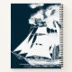 Hochschiff glatt segeln und eine schwindelerregende Wolke als Gesellschaft...perfekter Tag. Weiße Silhouette auf elegantem, dunkelblauen Hintergrund, Anpassen an Ihre Wünsche.