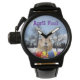 Uhr, Vintage Männeruhr mit schwarzem Lederarmband