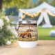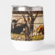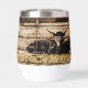 Un groupe de bovins longhorn se repose à l'ombre dans un champ dans cette oeuvre d'art en détresse. L'art fêlé ressemble à une peinture sur des lamelles de bois. Les vaches en orange brûlée, tan et noir reposent dans l'herbe verte devant une clôture et un champ brun. Produits correspondants disponibles.