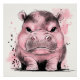 Grumpy Baby Hippo Tinte zeichnend mit Farbspritzen.