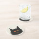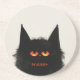 Dies ist ein minimalistisches Untersetzer-Design mit einer flachen Abbildung einer schwarzen, gruseligen Katze. Sie können den Text anpassen!
