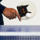 Das ist ein minimalistisches Pingpongpaddel-Design mit einer flachen Abbildung einer schwarzen, gruseligen Katze. Sie können den Text anpassen!