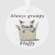 Un mignon chat grincheux avec les "vacances joyeuses" amusantes et sarcastiques avec cette année, nom et sur le dos "toujours grincheux". Une jolie illustration d'aquarelle de ce chat en colère caché dans une boîte vide.