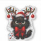 Grumpy Christmas Cat with Santa Hat and Antlers Aufkleber