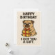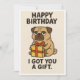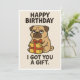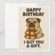 Ein urkomischer Mops sitzt mit einem Geburtstagsgeschenk und fängt perfekt ein, dass "Ich kam, hier ist dein Geschenk" Energie. Mit dem fett gedruckten Sprichwort "Happy Birthday - I Got You a Gift" ist dieses Design eine spielerische und sarkastische Art, jemandem einen guten Geburtstag zu wünschen. Ideal für Hundeliebhaber und Fans von trockenem Spaß, ideal für Geburtstagskarten, T - Shirt, Tasse und mehr auf Zazzle.