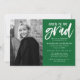 Wir laden Sie ein, den Absolventen mit unserem Applaus für die Graduiertenfeier zu feiern. Die moderne Graduiertenparty lädt das vertikale Foto des Absolventen auf den links ein. "Höhepunkt" wird in einem weißen, handgeschriebenen Pinselskript mit grünem Hintergrund angezeigt. Personalisieren Sie die Vorderseite der Einladung, indem Sie den Namen des Absolventen, den Schulnamen, das Abschluss Jahr und das Party Details. Die Einladung kehrt sich um, um ein abstraktes grün-weißes Punktmuster anzuzeigen.