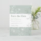 Die Dattelkarte enthält eine elegante Blumenzeilengrafik mit einem schluckgrünen Farbschema. Die moderne und gepflegte typografische Gestaltung der Save the Date Karte ermöglicht es Ihnen, sich die Details Ihres besonderen Tages anzupassen. Teil einer Reihe von Schreibwaren.