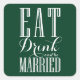 Grün essen, trinken und Verheiratet Hochzeit sein Quadratischer Aufkleber