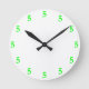 Diese Uhr freut sich auf das Ende des Arbeitstages um 5 Uhr (fünf Uhr). Grün fünf Zahlen auf weißem Hintergrund. Personalisierbar. Eine humorvolle Uhr, die perfekt für jeden ist, der von neun bis fünf arbeitet. Denken Sie daran, es ist immer irgendwo fünf Uhr.