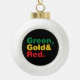 Grün, Gold und Rot. Keramik Kugel-Ornament