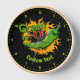 Grüner Pfeffer mit Umweltbotschaft über Flammenkreis. Benutzerdefinierte Hintergrundfarbe. Eigener Text.