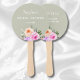 Personalisieren Sie diese helle Rose Brdial Shower Hand Fan, der Inbegriff von Eleganz und Charme für Ihre Blumenfeier Polterabend. Dieser Handfächer verbindet zeitlose Schönheit mit modernem Chic und verleiht Ihrem Event Raffinesse. Tauchen Sie ein in einen Garten mit exquisiten Rose aus Blush Pink, Lilac und Peach, die in traumhaften Aquarellstrichen bemalt wurden. Weiche Vegetation weht anmutig durch die Blüten und verleiht dem Design eine Touch natürlichen Reizes. Vor dem Hintergrund des ruhigen Sage Green ist die Blume ein faszinierendes Kernstück. Ideal für ein florales Brautparty Party, Mittagessen oder Picknick.