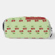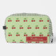 Eine hübsche grüne und rote Kirsche Muster Gingham-Kulturtasche mit einem einfachen Streifendesign. Dieses niedliche, trendige und elegante Kosmetiketui ist perfekt für sie, Ihre Tochter oder als modernes Back-to-School-Essential. Eine feminine, girly Pastell-Tasche für Frühling und Sommer.