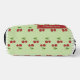 Eine hübsche grüne und rote Kirsche Muster Gingham-Kulturtasche mit einem einfachen Streifendesign. Dieses niedliche, trendige und elegante Kosmetiketui ist perfekt für sie, Ihre Tochter oder als modernes Back-to-School-Essential. Eine feminine, girly Pastell-Tasche für Frühling und Sommer.