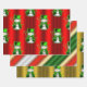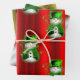 Die niedliche und farbenfrohe Weihnachtszettel in Grüntöne und Rot, die niedlichen Schneemänner in grün auf metallischem, rotem Hintergrund, mehr grüne Schneemänner auf goldenem Hintergrund und ein diagonal gestreiftes Rot-, Grün- und Weißmuster.