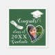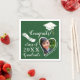Erstellen Sie einzigartige grüne und weiße Abschluss-Servietten für die Klasse der 2025-Absolventen mit einem herzförmigen Foto (mit der Vorlage, um Ihr Bild hochladen), Glückwunsch-Sprichwort, Gradmütze und Diplomabbildungen. Es ist einfach, die Hintergrundfarbe des Designwerkzeugs zu ändern, um den Schulfarben zu entsprechen. Bitte, personalisieren Sie den Namen und den Nachnamen des Absolventen, laden Sie ein individuelles Foto hoch und fügen Sie ein Jahr vor der Bestellung hinzu.