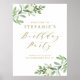 Herzlich willkommen zu Ihrer Veranstaltung mit diesem individuell gestaltbaren Geburtstagsparty Willkommensschild. Es ist mit Aquarellgrün und weißen Blume mit Kalligraphie ausgestattet. Personalisieren Sie diese, indem Sie Ihre Daten hinzufügen. Dieses Grün-Geburtstags-Willkommensschild ist perfekt für den Frühling und den Winter Geburtstag.