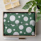 Weiße Flecken unterschiedlicher Größe auf grünem Hintergrund.