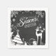 Ihre Weihnachts- oder Feiertagsfeier wird mit diesen lustigen Pop noch ein wenig mehr werden. Die Grußpapier-Servietten der Saison mit einem modernen, trendigen, schwarz-weißen Imitat-Chalkboard-Hintergrund mit einem Weißen Hirsch, der mit Heiligen und Beeren verziert ist. Das Reh ist umgeben von Schneeflocken, Bäumen, Sternen und einer umhüllten Geschenkboxen.