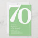 Eine trendige, grüne und weiße 70. Geburtstagsfeier, die nahtlos den Charme der alten Welt des fetten Serif-Schriftartes '70' mit einer modernen, benutzerfreundlichen, personalisierbaren Vorlage verbindet. Diese Einladung ist nicht nur eine Karte, es ist ein bedeutsamer Sake, den Meilenstein der 70-Wende zu schätzen.