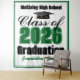Passe deinen eigenen grünen High-School-Abschluss-Fotobooth-Teppich für den Abschlussjahrgang 2026 für einen High-School- oder College-Absolventen an. Coole Varsity-Buchstaben für das Jahr auf dem Gedenkdekor für die Abiturienten.