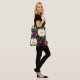 Das fruchtige Retro-Design mit stilisierten halb grünen Äpfeln und roten Kirschen auf einem subtilen, dezenten Hintergrund. Schwarzer Hintergrund. Große Größe. Design von Maisie Milton Studio