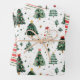 Hier ist ein lustiges und helles drei Design-Set von Weihnachtsblättern mit zwei Designs, die Bäume als vorherrschendes Design verwenden. Die Farben sind überwiegend grün und weiß, mit goldfarbenen und roten Touchs. Zusammen mit den Baum-Bildern kontrastiert ein Papier mit roten, grünen und weißen Streifen.