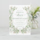 Die rustikale Brautdusche ist elegant und präsentiert einen zarten Kranz mit grünen Blätter und blühenden weißen Blume in sanften Aquarellfarben. Die Einladung ist mit modernem Kalligrafietext in einer ausgeklügelten, staubigen grünen Farbe geschmückt, die ein zeitloses und anmutiges Design schafft. Ideal, um den Ton für eine unvergessliche Feier zu setzen.