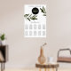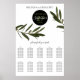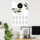 Dieses Design umfasst Oliven-Blätter und Zweige. Die wunderschöne Vegetation der Oliven-Blätter ergänzt die elegante, moderne Kreissage, die den Hochzeitstag umkreist. Eine perfekte Verbindung von Moderne und Chic mit rustikalen Olivenfarben. Olivgrün, Schwarz und Weiß passen perfekt zu einer mediterranen Hochzeit. Einzigartiges Hochzeitssitzdiagramm-Design mit modernen Elementen. Auch die passenden Hochzeitseinladungen und andere Schreibwaren sind verfügbar.