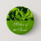 Erfrischender Frühling, Sommer grün Blätter Hochzeitsknopf, Button. Mutter, Vater, Großmutter, Großvater Schwester Tante der Braut oder Bräutigam. Foto der Natur.