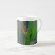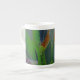 Das Originalfoto von MaeFlowers auf dieser Kronen-China-Tasse ist mit dem Retro-Design eines tropischen Stoffes eine Nahe grüner Blätter mit ihrem linearen Detail und anmutigen Kurven. Einige der Blätter fangen das Licht auf eine Weise, die Rost und lila macht. Der Hintergrund des Fotos ist eine Unschärfe an weichen Grüntönen.