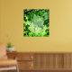 Dieses Poster lädt Sie ein in eine grüne, grüne Welt des Friedens und der Ruhe. Dunkle Ahorn-Blätter umrahmen das Bild und führen zu einer sonnigen Waldlandschaft mit Gelb-, Weiß- und Waldgrün.
