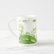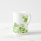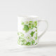 Diese schöne Knochen-China-Tasse wird mit einem hübschen grünen Blumendruck gezeigt. Passen Sie diese Tasse an oder kaufen Sie, wie es ist.