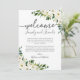 Benutzen Sie unsere Begrüßungskarten für das weiße Blume- und Grün-Hochzeitshotel, um Ihre Gäste aus der Stadt zu empfangen und lassen, dass sie mehr über Ihre Hochzeitsreise erfahren. . Verwenden Sie Zazzle's "Personalize this template" Tool, um Ihre Informationen zur Hochzeitszeremonie einzugeben. Wenn Sie die Platzierung der Textfelder, der Schriftart oder der Größe ändern möchten, klicken Sie einfach auf den Button "Weitere Anpassungen vornehmen", um diese Dinge zu ändern. Lassen Sie sich von unserer großen Auswahl an koordinierenden Gegenständen in der modernen White Floral Wedding-Kollektion verzaubern!