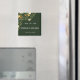 Ein grüner Save the Date Hochzeitsmagnet, der Ihren Freunden und Ihrer Familie das nächste Hochzeitsdatum ankündigt. Das Design besteht aus einem dekorativen Blumenbild des Kletterns von Pflanze und fließenden Reben mit kleinen goldenen, orangefarbenen und weißen Blume. Das Datum und die Namen von Braut und Bräutigam können in den Optionen sehr leicht personalisiert werden.