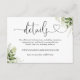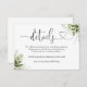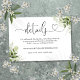 Diese elegante grüne Blumenschrift Hochzeitsdetails Gehäuse Karte kann mit Ihren Informationen in der schicken Typografie personalisiert werden. Entwickelt von Thisisnotme©