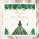 Diese elegante und glamouröse Geburtstagsparty-Serviette besticht durch eine schöne Prinzessin mit dunklem Haar und dunkler Haut in einem grünen Ballkleid. Der Text kombiniert handgeschriebene Skripte mit modernen serifenlosen Schriftart für ein elegantes und raffiniertes Aussehen. Die Blumenarrangements, Schmetterlinge und Goldkonfetti bilden die perfekte Mischung aus rustikal und schick. Grafiken von www.etsy.com/uk/shop/SunflowerDayLove
